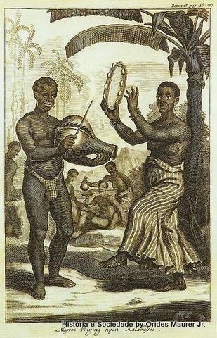 Negros tocando cabaça e pandeiro, Johan Nieuhof